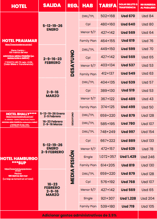 Adulto con todos los servicios – Hotel Hamburgo / Praiamar: menores de 5 a 7 años tarifa child